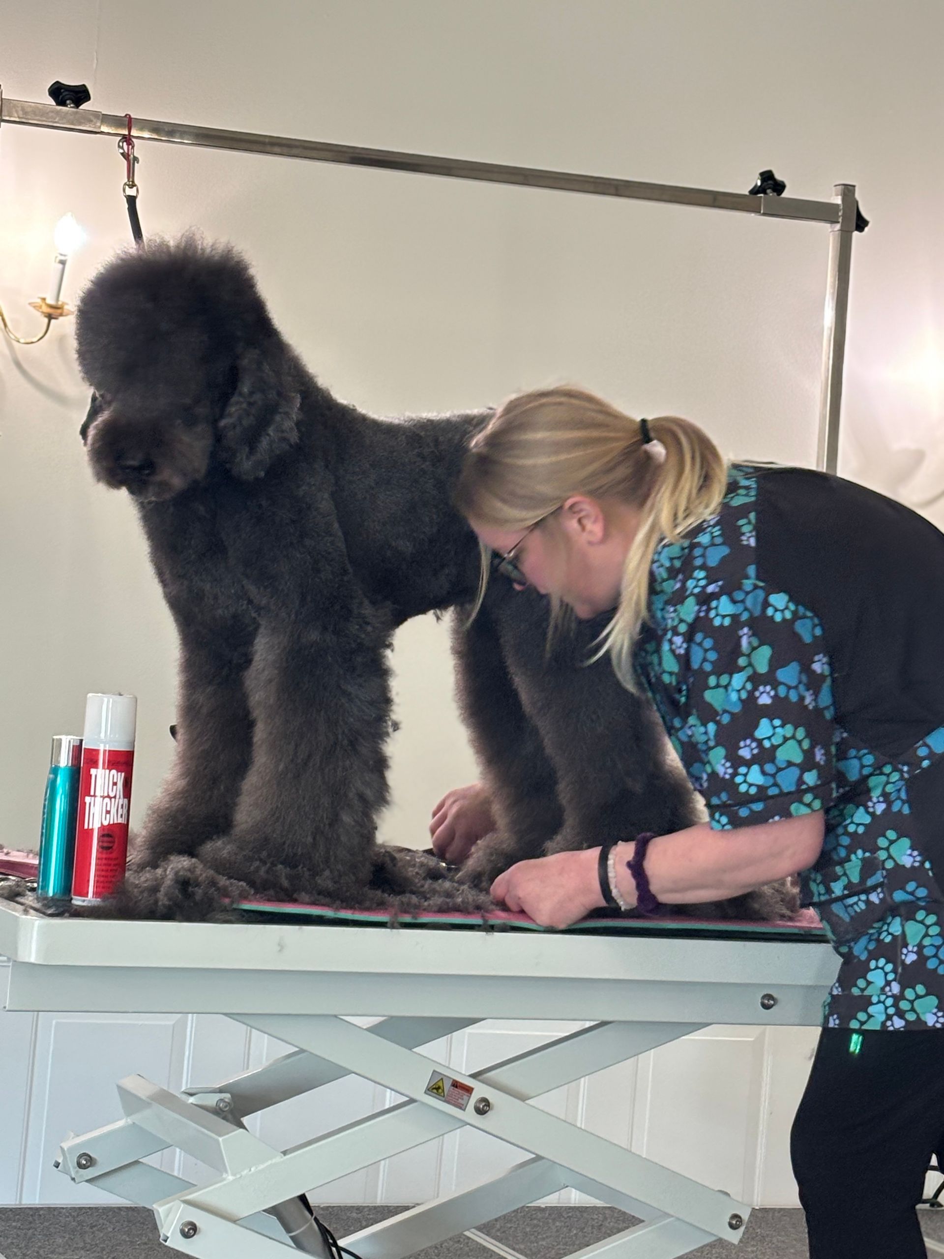 All contestants are required to bring their own grooming equipment. Grooming tables are being donated by PetEdge and will be for sale at a discount after the show. There will be no access to electricity, bathing stations, or drying areas. All dogs must arrive fully prepped- bathed, dried, and ready for final competition styling. Please plan accordingly to ensure your dog is groom-ready before entering the ring.